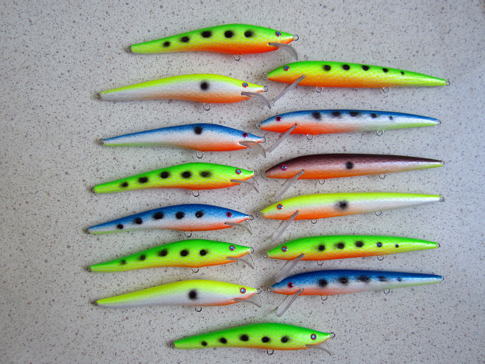Воблерки хорошо показавшие себя на Онеге. ПВХ 100мм. из 8 штук осталось только 5. Один подарили, один срезала щука и один оторвало что-то не подъемное, и сломало спиннинг.