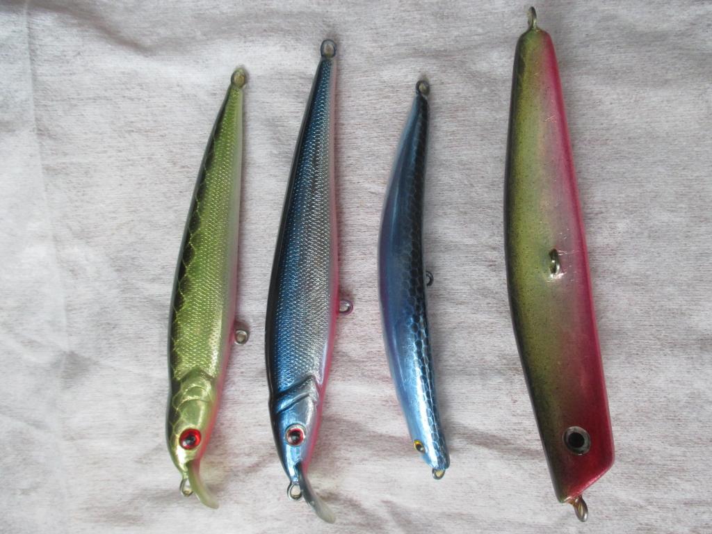 Все из осины, фольгированы. Длина от 110 до 130, вес не знаю. Миношки на грани плавучести, бенты естественно плавающие.