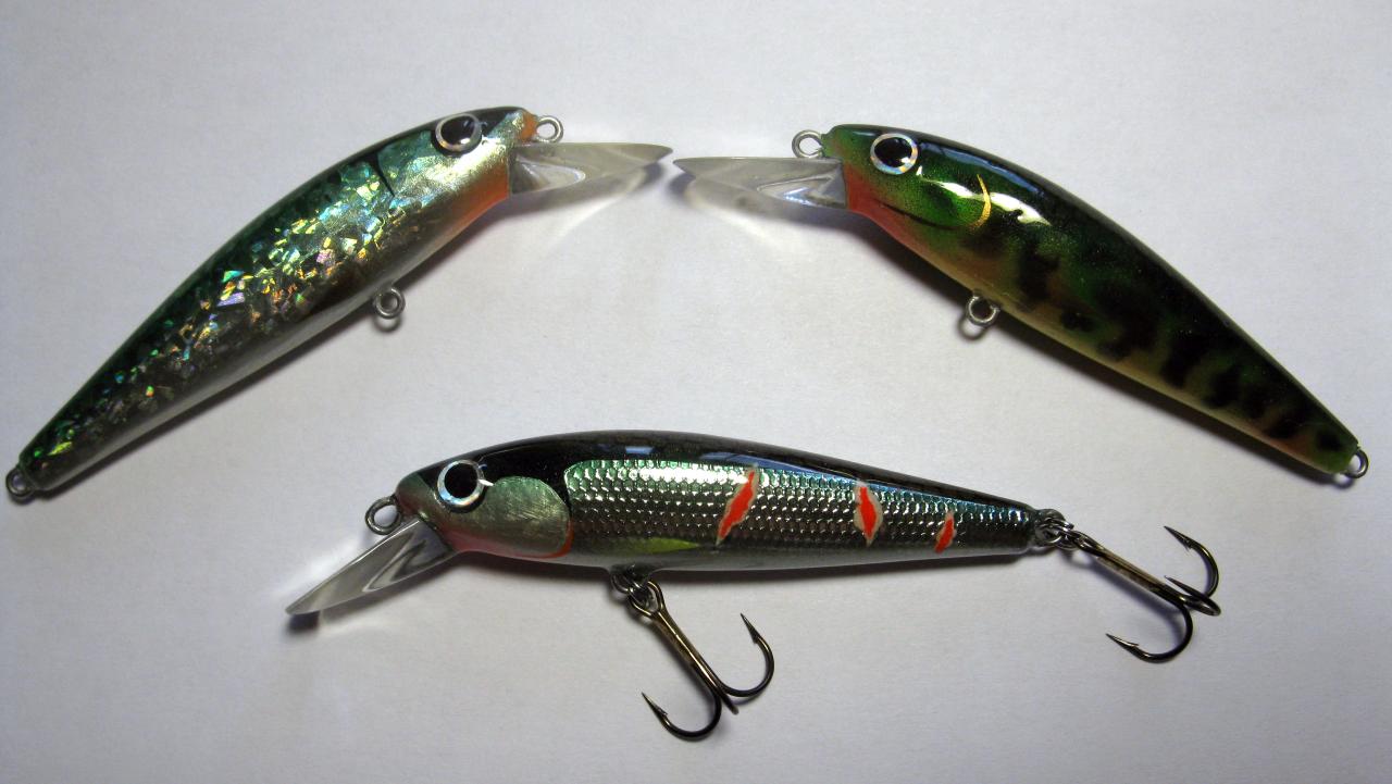 Все воблеры настраиваются на сильное течение (не выдернешь) , гарантия на прокус от щуки до 1,5 кг(больше на них не ловил). Материалы все обеспечивают качественное покрытие, лак LV-1, грунт гель светоотверждаемый, многослойное покрытие с шлифовкой для выравнивания поверхности и хорошей адгезией на каждом слое(без исключения), двух-трёхслойное покрытие финишными слоями для проявления глубины цвета и блеска, индивидуальная настройка на сильных перекатах с продёргиванием