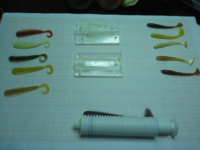 По поводу мягкости вот 4ех сантиметровый твистерок на дроп-шоте. Первая моя работа.) Форму для него делал из строительного силикона. Не очень эстетично, но ловит.