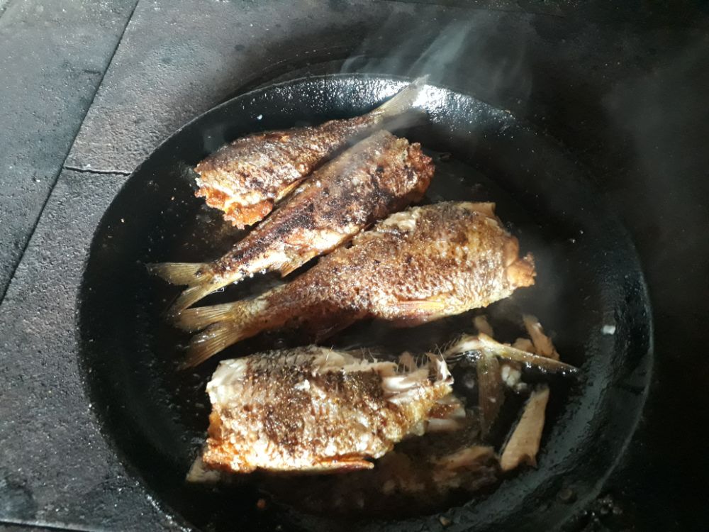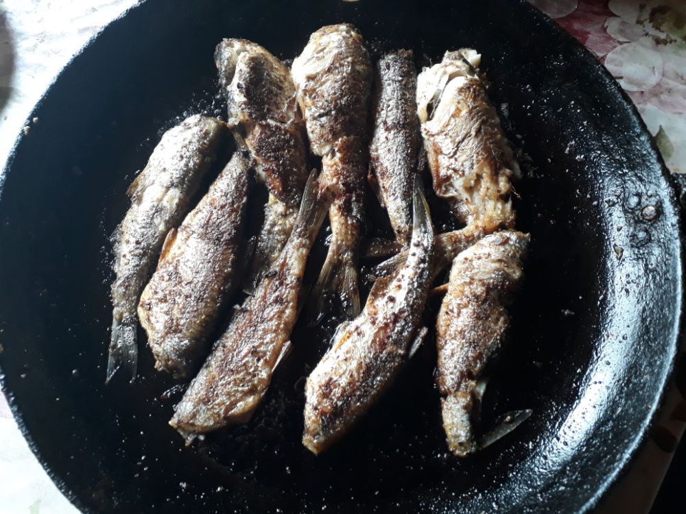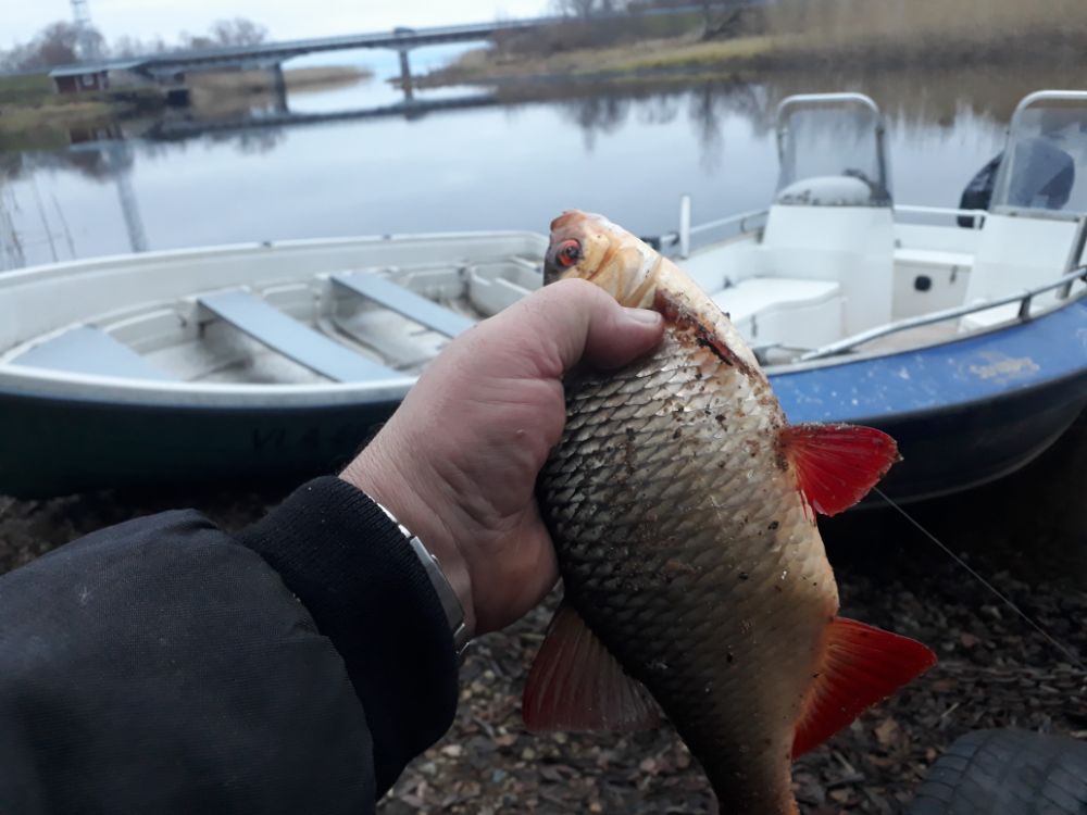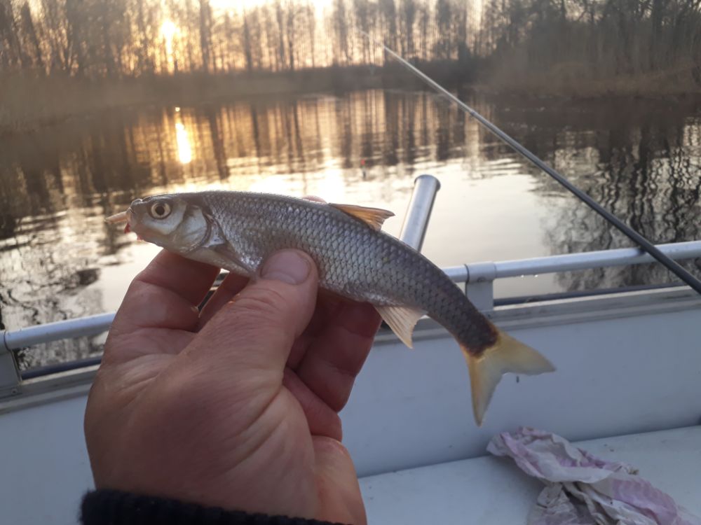В пятницу ветер только что деревья не вырывал , за ночь подстих малехо. Под утро даже солнце выглянуло . Поднялсч выше по реке , температура воды как и в прошлые выхи , меньше трех градусов, ну и по рыбалке все как в прошлые выхи , ельца нет . Просидел до обеда в надежде что может толкнется , не случилось. Перешел к устью , там рыбка шевелилась , но ветер , пару раз с якоря стаскивало , поимел на жареху и устав боротся с ветром подался до берега.