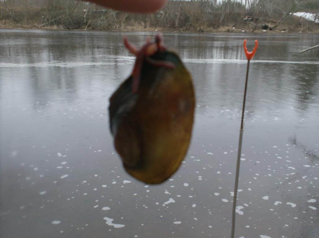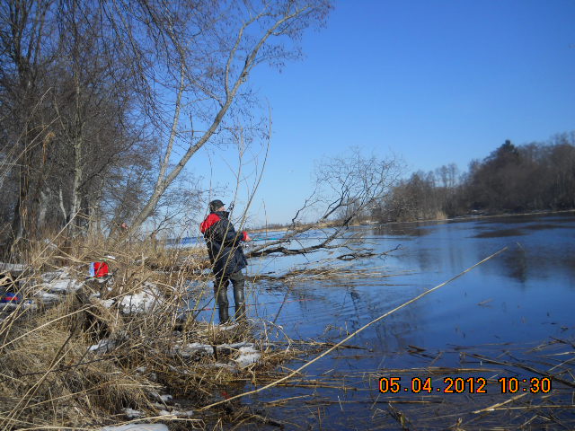 Всем доброго времени суток.Ну и я вчерась открывал сезон жидкой воды,можно так сказать.Подъехал тож,где-то около восьми,машину удалось приткнуть только почти у самого асфальта.Но раньше,не видел резона т.к.термометр казал минус.С собой удочка(разговоры,ловят на удочку,и рядом с берегом),ну а основную ставку всё одно решаю сделать на фидер(фидераст из меня ещё тот..).Хотелось поиметь парочку карасиков,таких,красивеньких.Уж больно их интересно выуживать,да и на сковородочке,вкусны бесспорно.На что реально рассчитывал,да не на что,в том году два раза выбирался,и была такая же погода,и оба раза пролетал.Но лучше съездить и успокоиться,чем сидеть дома и думать:а вдруг?.Подхожу я значит к мостку и наблюдаю такую картину:весь правый берег,за исключением нескольких человек свободен,за то напротив,плечём к плечу,в основном поплавочники.Проходя чутка тормознулся поглядеть,да полавливают маленького карасика вперемежку с уклейкой.Нет не на такую рыбалку хотелось,и протопал дальше,чуть выше,свозь любимые дебри,на глубину,и расположился в гордом одиночестве.Первые пару часов пробую ближнию,среднюю,далбнюю дистанции,всё как в лужу.А с неба вроде как и дождь,но какой-то не мокрый,то белый,то серый,пощупал одёжу,нет не мокнет;тока вот левая нога,в зимнем сапоге вроде как похлюпывает,думал осенью показалось,ан нет.Но для заброса приходится снова и снова входить в воду,согревает надежда,что вот сейчас,вот случится,произойдёт.И произошло.Поклёвка не поклёвка,но как то странно,и одного опарика не хватать на крюке.Туда ж,непонятные колебания палки,подсечка;опять не дсчитываюсь наживки,и следующий вроде как за попу укушен.Пуляю опять туда ж,уже веселее,как буд-то,аха,есть,или нету,и всё ж есть