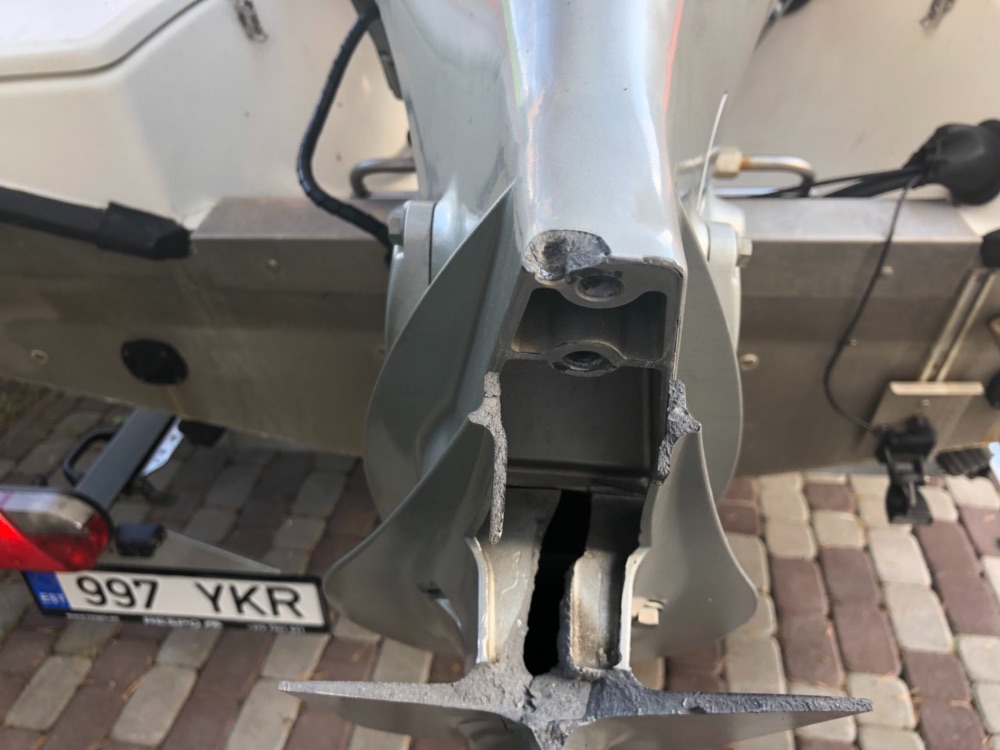 Тьфу тьфу тьфу, это соседа катер, хотя и я винтом об этот же камень чиркнул. Случилось в Котка , были там много раз и туды сюда изьезженно было не мало, а тут толи вода спала толи еще чего. Хотя на картах ничего не обозначенно там ни на гармине ни на хаменбёрде