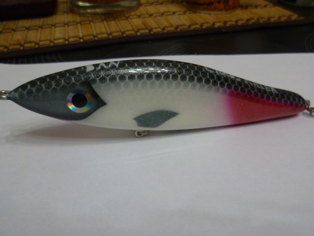 Я в резиновой перчатке беру джерк, надеваю скрепку на одну из петель и держа его за эту скрепку и 1/3 тела лакирую кисточкой. Оставшийся непокрытый 1/3 участка, лакируется на весу, держа только за скрепку.vdv писал(а):Как удерживать воблер, пока его мажешь? Как его вешать, когда он намазанный ?.
