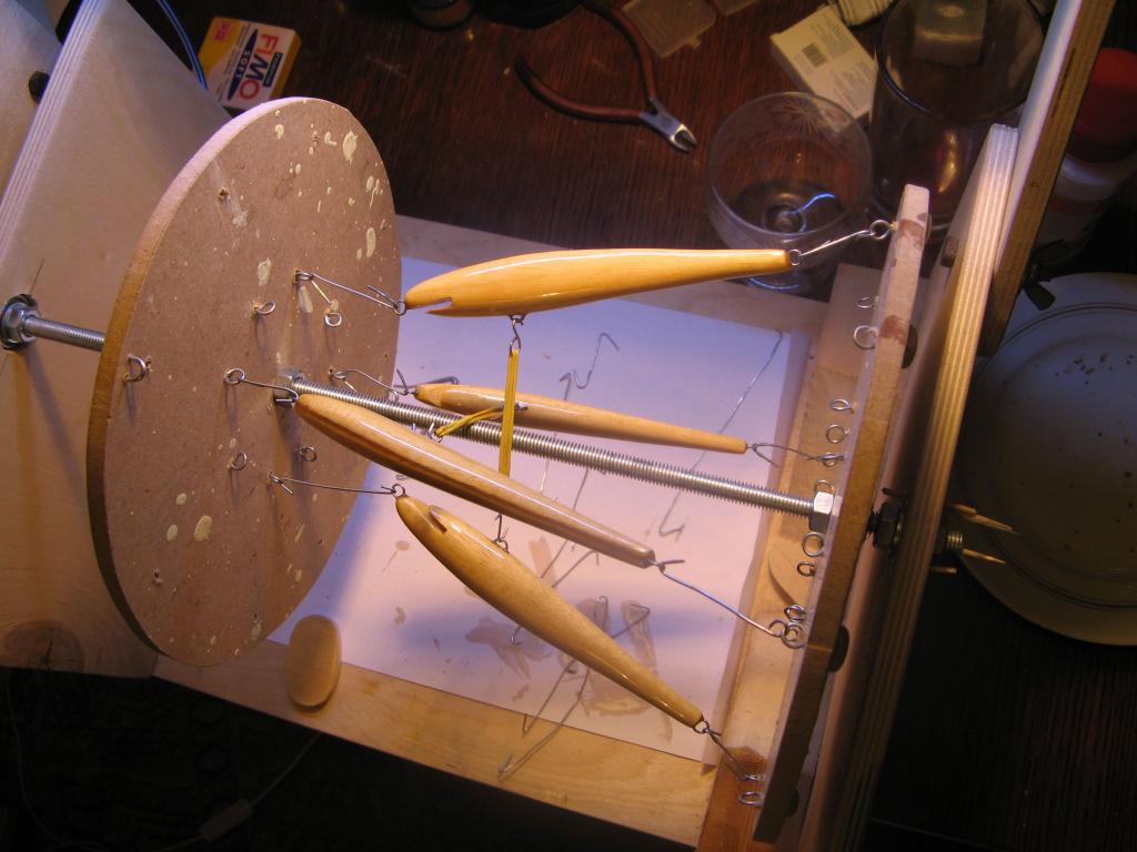Вот еще, кстати, один твой совет никак в голове не уложится. Покрываю воблеры энвиротексом прямо на сушилке, уже снаряженные (ну, правда, в отличие от того видео, что Павел показывал, крашу все же остановленные)