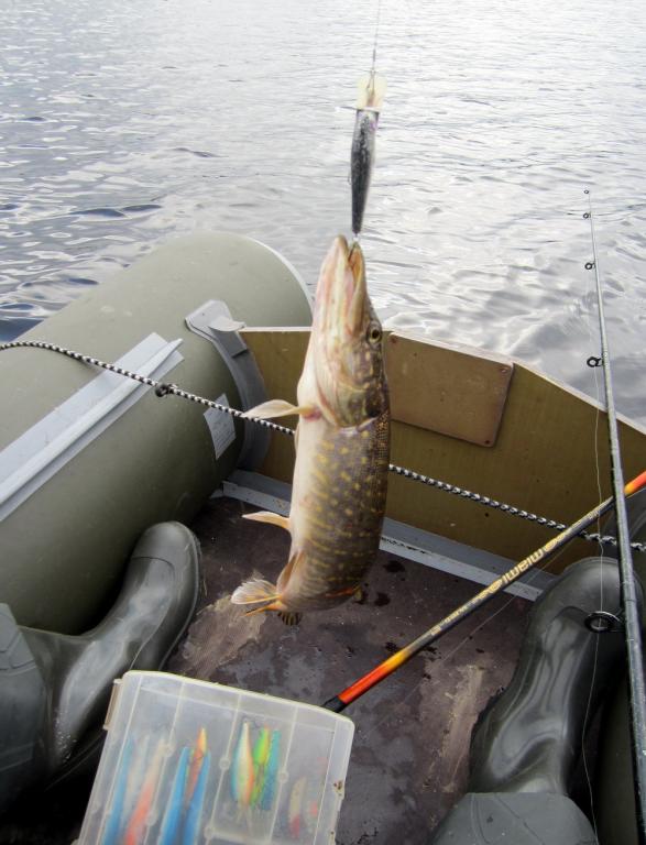 Крупные воблеры (11 см и выше) оказались не востребоваными. Правда на пятнистого-11см. заполучил одного из "бонусов" да обидный сход монстера у лодки.
