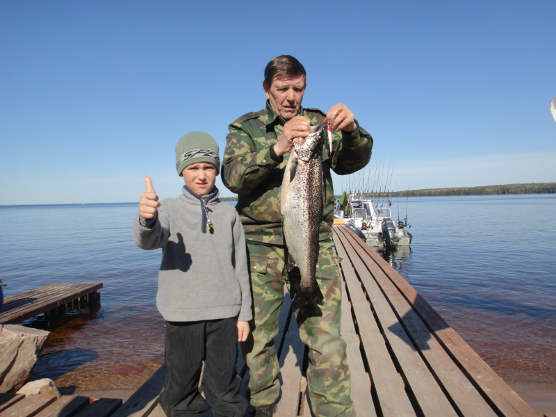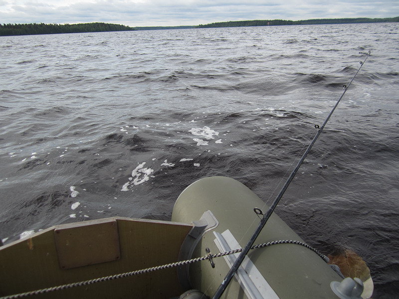 Приехали к обеду, поэтому решил начать с поиска судака, т.к. его стоянка находится далеко от нашего лагеря. Рыбачил на 2 спиннинга на одном стоял воблер от Рапалы на втором мой, тем самым была возможность сравнить глубину заглубления, его игру и результативность. Как оказалось мой воблер был с небольшим брачком - на большой скорости проводки начинал сваливаться в штопор, но медленной и средней проводке давал очень устойчивую высокочастотную игру, больше чем Рапала. Мне понравилось и рыбе тоже - 1-0 в мою пользу! Воблер был подарен другу, судак жене.