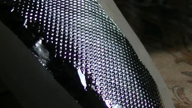 Сетка продавливает фольгу, рисунок отпечатывается в нужном положении (чешуйки большие). Пробовал вместо металла 15 мм фанеру - результат идентичный.