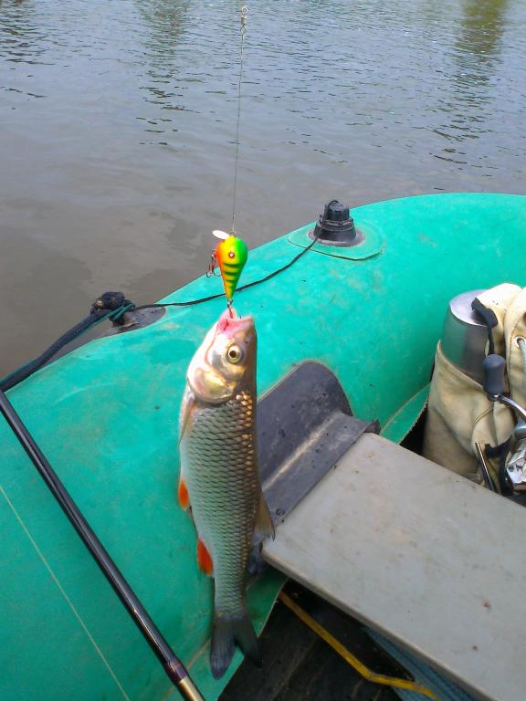 Троллинг на реке, глубины 3-10 метров. Удилище взял короткое (180см) с большим тестом.