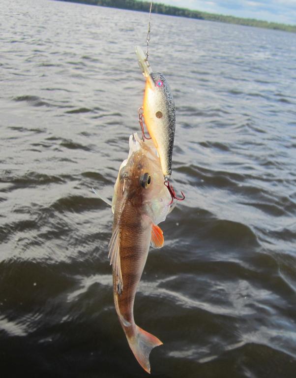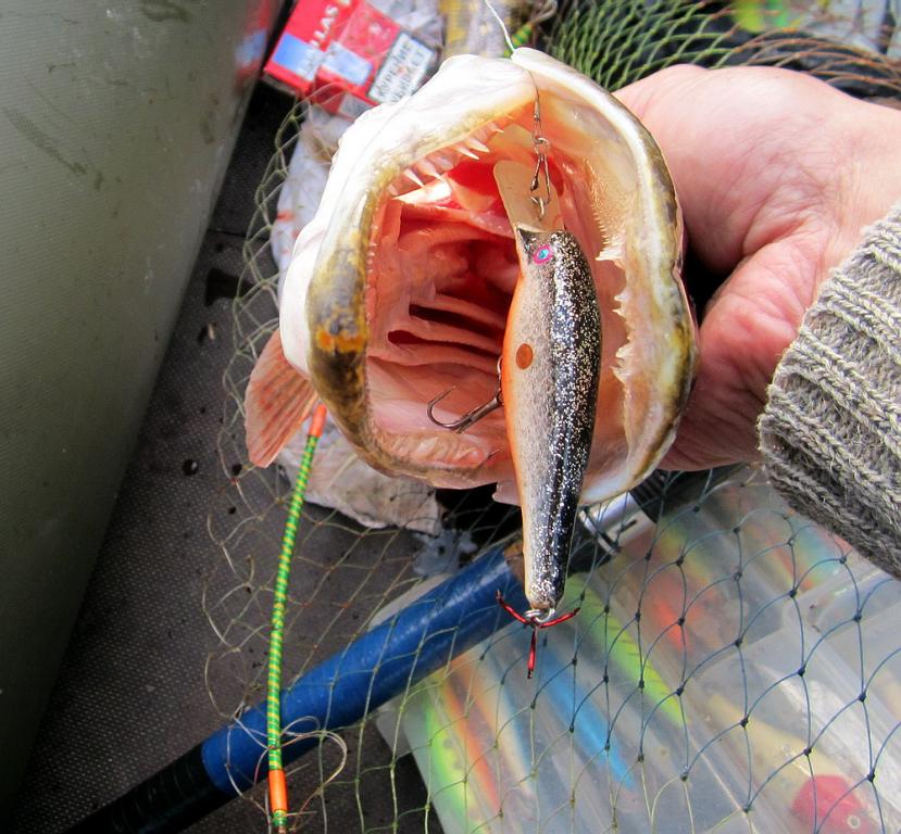 Как и обычно приманок с собой было взято много, но сколько не подбирал их все поклёвки почему-то получилась на один страшный, ч1рный в серебристую крапинку воблерок.