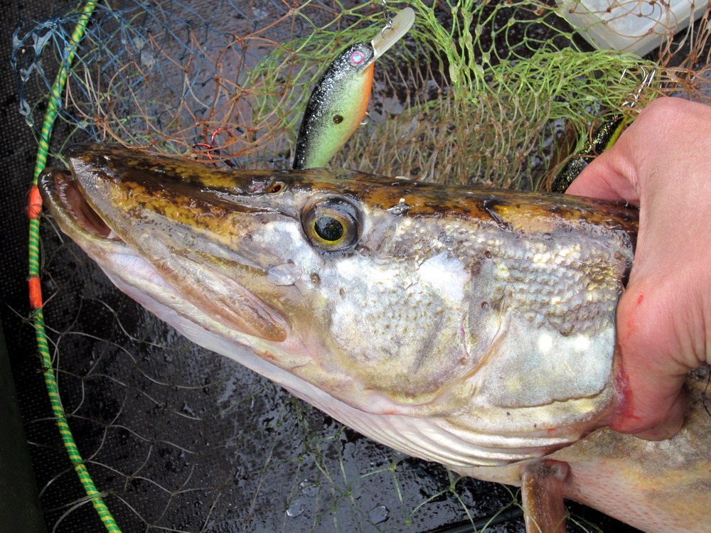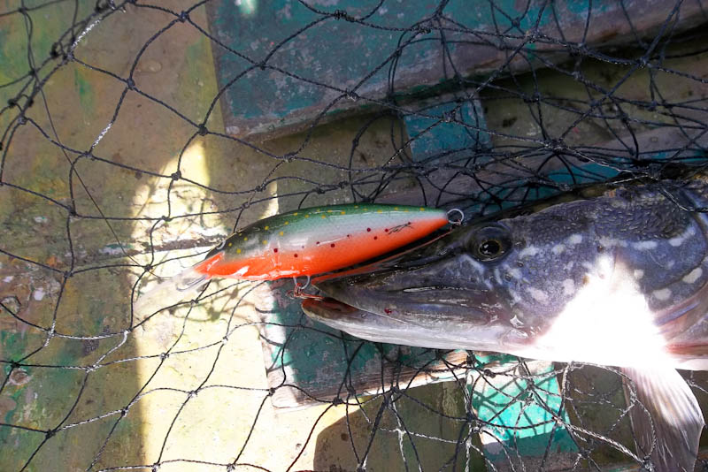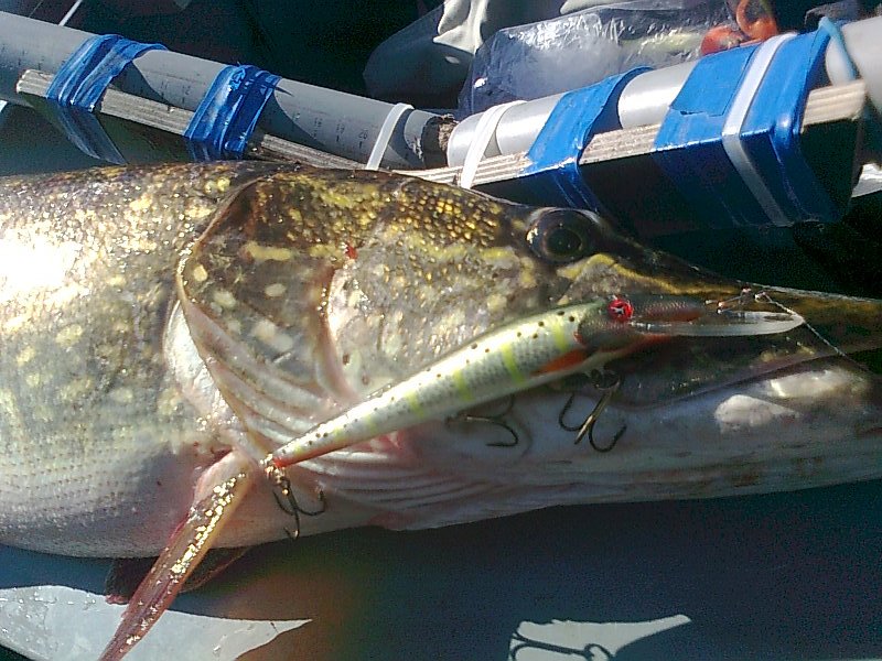 Щука спит. На пенопластового шедика соблазнил пару мелких - полу сонных...
