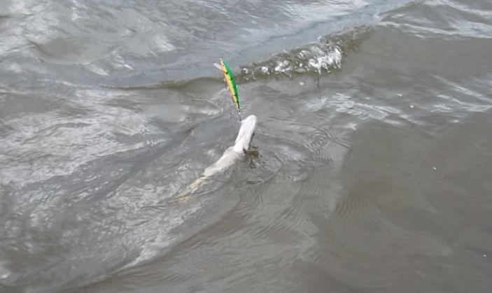 Габаритные приманки (11-12 см.) не работали. Чуть долбало шелупень - шеды-7 с кастрированными лопатами (заглубление - 2м.). "Чёрный спина - зелёный бока" оказался снова лидером!