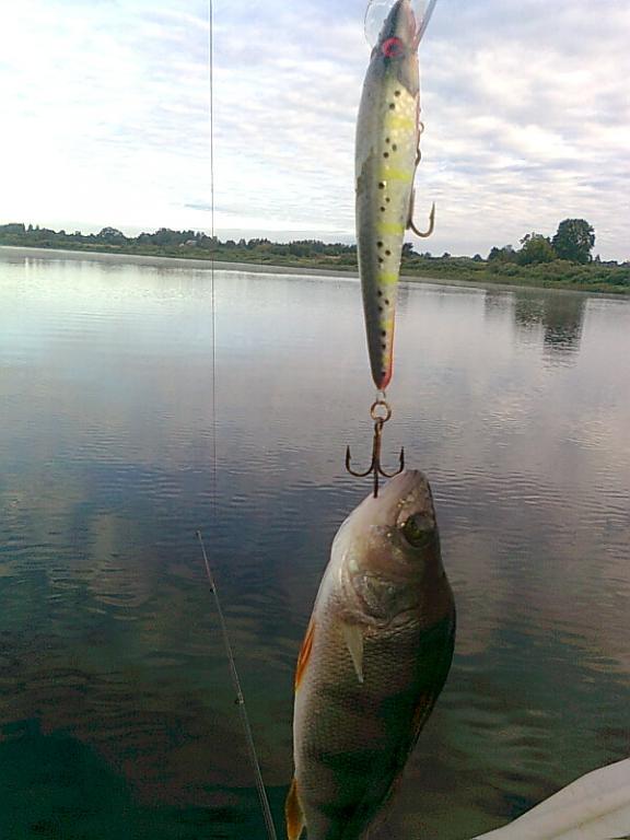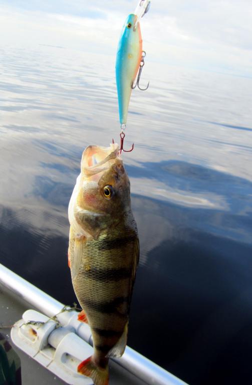 Сегодня посетил Финский залив. В основном жиговал, но на дорожку тоже походил. Судака не нашёл, так что кроме полутора десятка не крупных окуньков никого более не соблазнил. Из воблеров полосатым больше приглянулся синий шедик-8 с аккустикой...