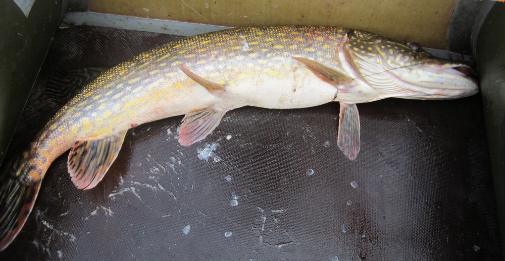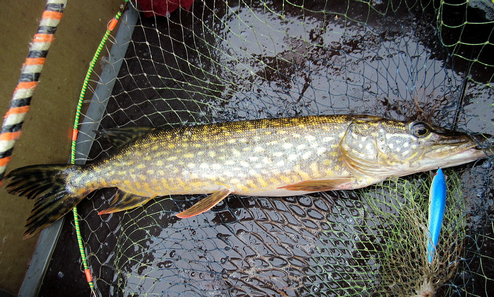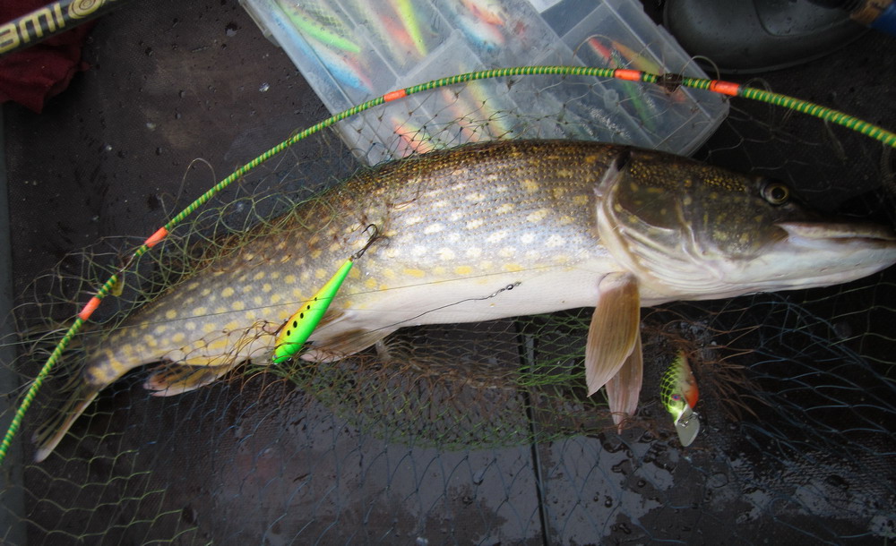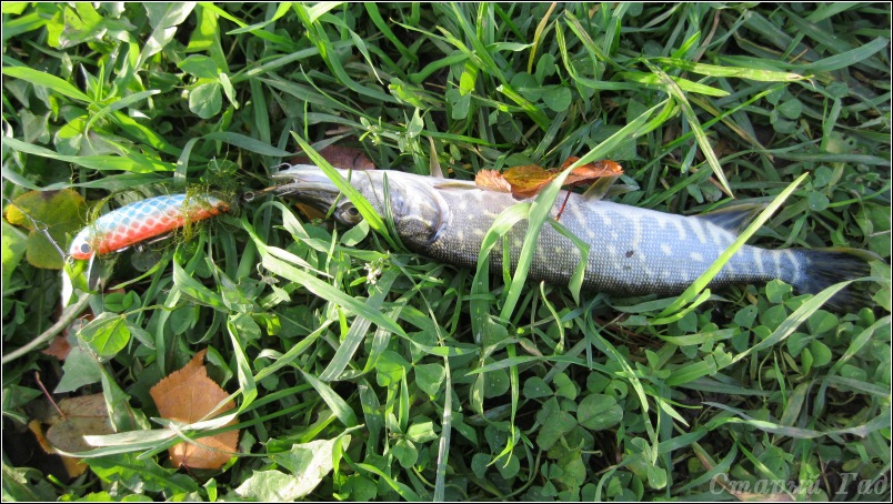 Хотя, конечно, будь у меня медленно тонущий воблер подходящего цвета и размера... неизвестно, чем бы закончилось состязание... но самая крупная щука взяла на таком забросе, который воблером ну просто не сделать. Метров 40, а то и 50 с попаданием в метровую полосу интереса - это не для воблеров.