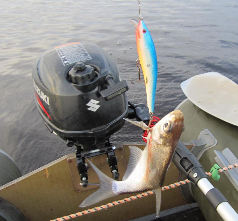 - и еще один,черный с фольгированными боками - тоже сегодня, однако досадный сход возле самой лодки подпортил карьеру напарника, как начинающего троллингиста.