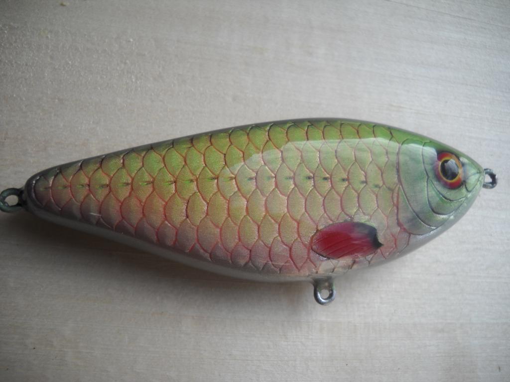 Не знаю что в них особенного, здесь у форумчан вообще произведения искуств есть. Эти покрасил вообще по быстрому. Алюминиевый скотч покрыт лаком, потом пузо белым или желтым, чешуя через сеточку, полосочки от руки без трафарета. Даже не знаю что писать, все очень просто. Виталий, посмотри в пошаговых там есть примеры покраски, например Володя окушков показывал как красить. Или на youtube поищи, покраску приманок.VITALKA писал(а):Если не секрет, как выглядит процесс покраски этих красавцев?