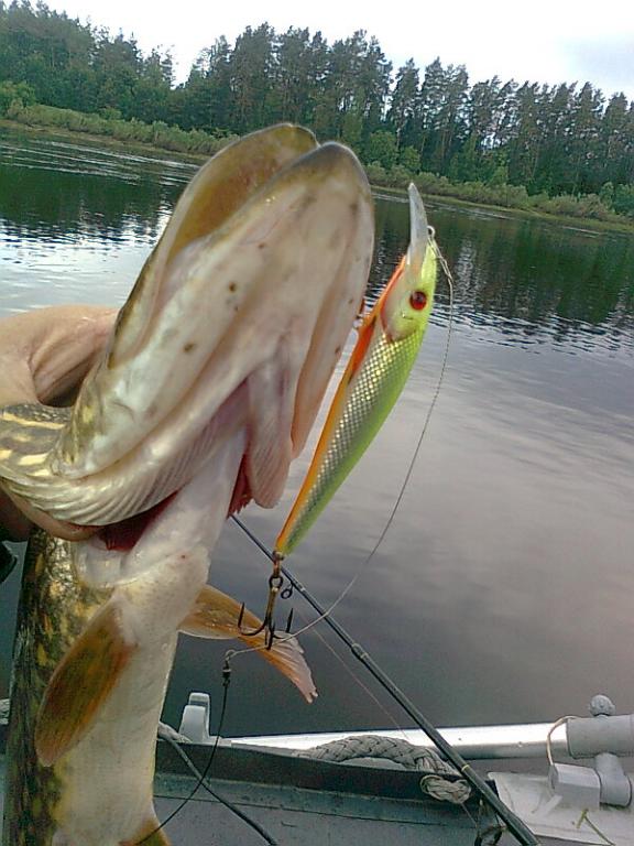 На заброшенном карьере где воды по колено ,есть ямка глубиной по ... /пояс/ Водятся только караси /патцанва там ловит/ ну и мой племяш пока я отстраивал вобы сидел баловался , и вдруг при очередном забросе на середину этой "лужи" сзади за воблером образовался бурун, У меня ноги подкосились, далее после метров 4 проводки -удар ,села щучка на 1кг. Было 10 мая.Взяла жадно на ультролайтик аж из жабер вытаскивал. Откуда?!