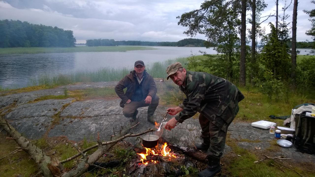 Вернулись вчера из Таммиссари, где мы отрыбачились полтора дня. Первый вечер часика за полтора, набомбили окушков и одну щучку. Этого было вполне достаточно на уху и на второе блюдо из щуки, напарник любя его обозвал ″Распи.....ка″. Щука(филе), картошка, сало. Всё укладывается в алюминиевый контейнер и на угли. На второй день вышли на воду не рано, часиков в семь. Рыбачили до ∼ двух и в итоге поймали штук 10–12 щучек не много окуня. Напарник говорит, что по окуню результат плачевный, обычно он берёт лучше.Трофеев не было, щучки от 1–2,5 кг. Был интересный момент, при вываживании одного экземпляра на него покусилась другая,и это уже был приличный экземпляр. Напарнику пришлось постараться при выкачивании. Дотощив до лодки большая выплюнула маленькую и сказала "Привет". Привет так привет, в следующий раз мы её возьмём!