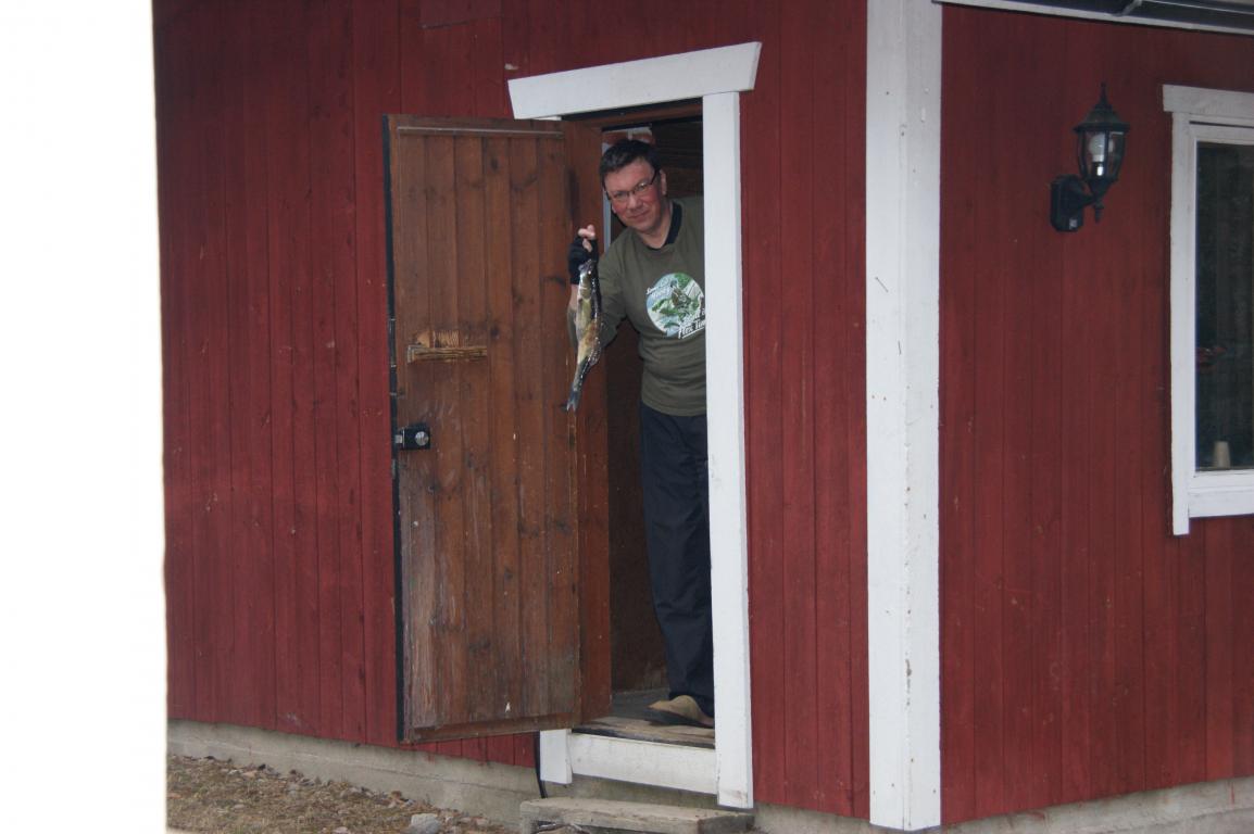 Спининги и воблеры дал Ярмо Эклунд. На моих леска толстая. На следующий день пытались поймать с берега реки, но даже окушки клевать не желали. в воде, у берега валялась щучка на пол кило, а отрубленная ее голова лежала у дерева в муравейнике. Не хочется это коментировать и так все понятно.