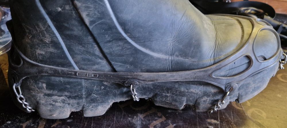 Могу ещё добавить, коготочки проще снять чем зимние сапоги, особенно когда надо двигаться по полу