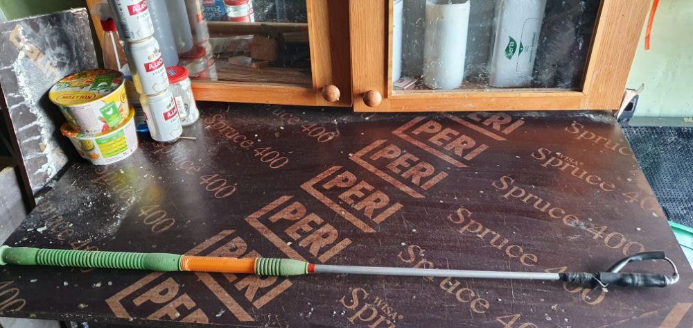 Он его умудрился сломать. Вернее, через ушко крючка, была поставлена заклёпка крепящая его к питерскому спину, обмотано проволокой и пропаяно оловом, в этом месте алюминий и сломался, прослужив хозяину лет 5, а то и более...