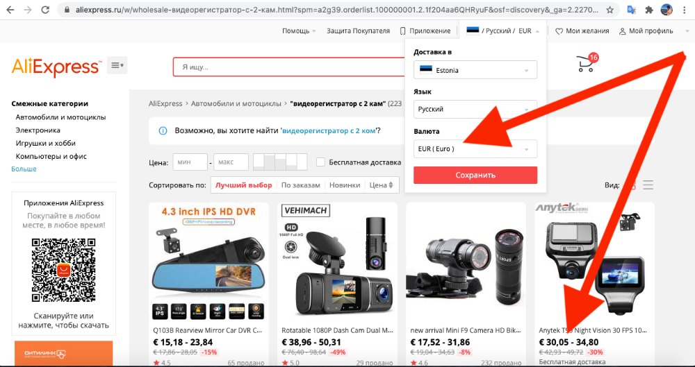 Скажем, когда выбираешь Русский язык, доставка в Эстонию и валюта €, то он автоматом перекидывает тебя на Российский сайт. Но когд ты делаешь заказ, тебе высвечивается сообщение, что для оформления заказа вы будете переведены на Али.com и ценник тут же подрастает и валюта меняется - дурдом.