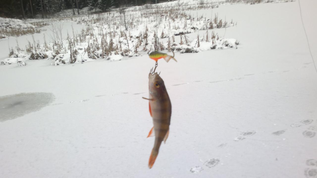 Однако номер не рабочий,звонит Виньпух -" Мы на льду,окунь есть!" Прыгнуть в комбез,схватить удочку и коробочку с блеснами -дело пару минут. Домашние покрутили польцем у виска и наказали звонить каждые 10 минут.Прилетаю на безымянную старицу.Лед близко к 10 см.Я со своими 85 кг самый легкий в компании ,поэтому смело ступаю на ЛЕД!