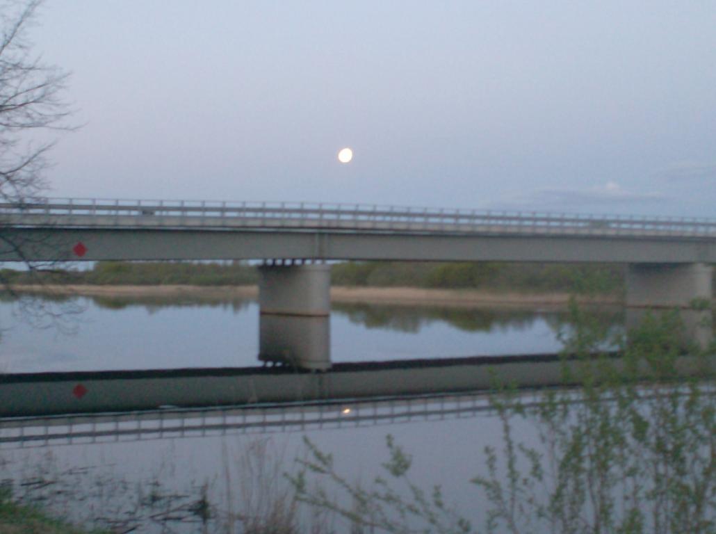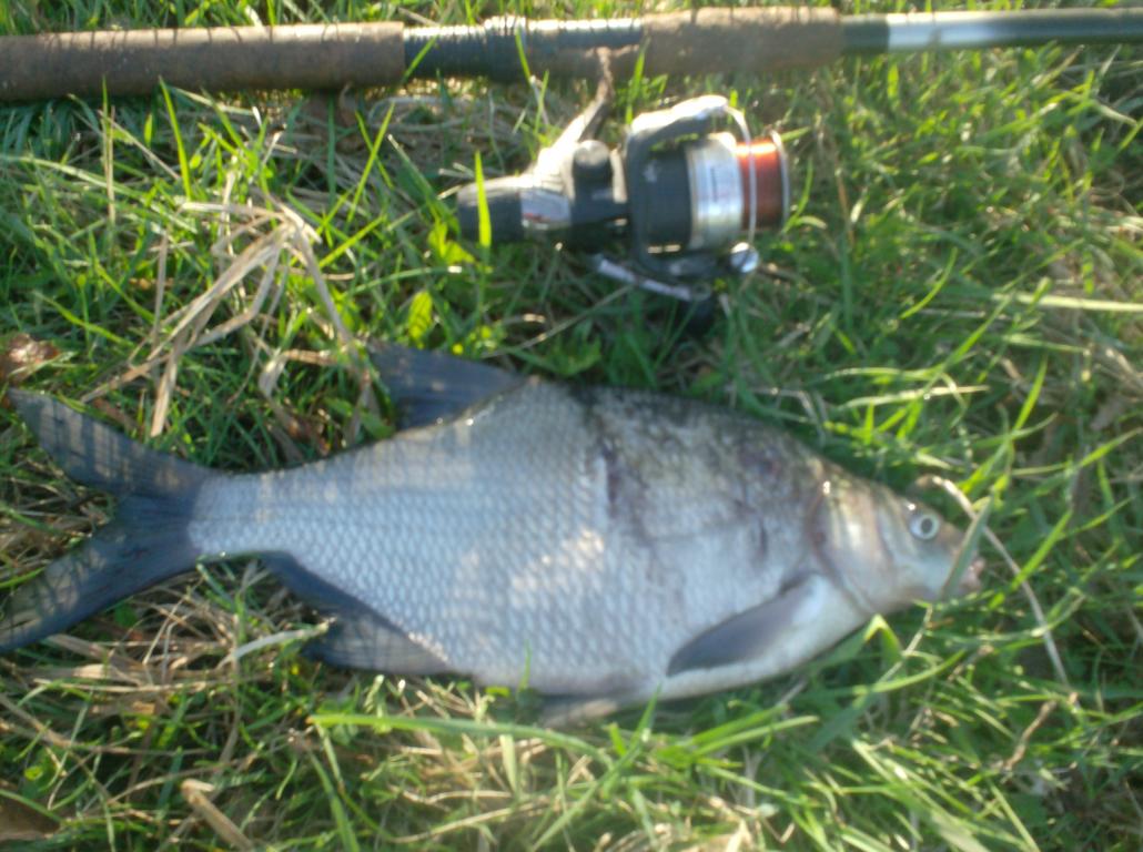 С четырёх утра,начал обстреливать реку по новой.В начале шестого вроде лещёвая поклёвка,отстрел-провис лески,висит и тишина,чё делать,ну ни ловил я никогда лещей такой снастью.Для приличия чуть подождал,подкрутил лесу,дёрг,фиг-вам,пусто.Но и мелочь не особо достаёт,ещё не проснулась.Уже около семи,поклёвка повторяется,я замираю,решаю понаблюдать шо будет.леса просто висит,нет,пригляделся чутка дрожит,выбор слабины,подсечка,есть.И пусть он был не большим,но первым в этом году,и первым на такую снасть у меня вооще. Просыпалась природа,а вместе с ней и террористы по обглдыванию наживок,шло утро нового дня,по мосту заснували автомобили...