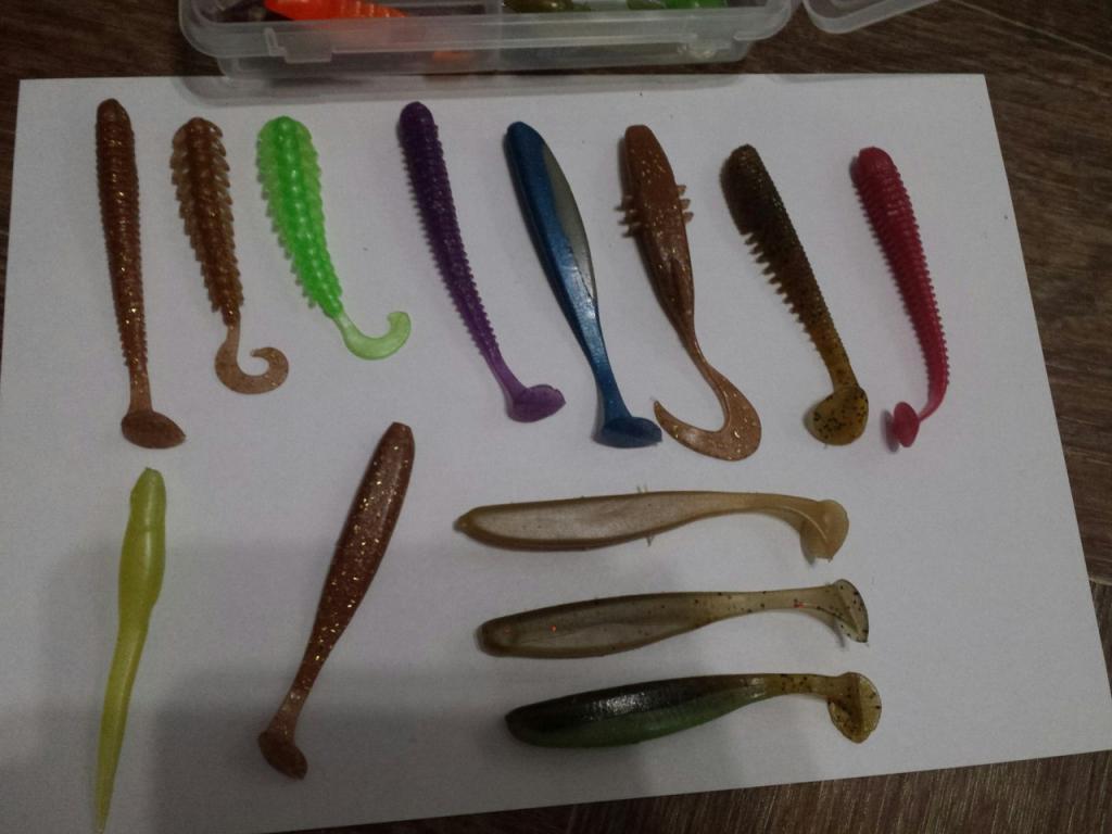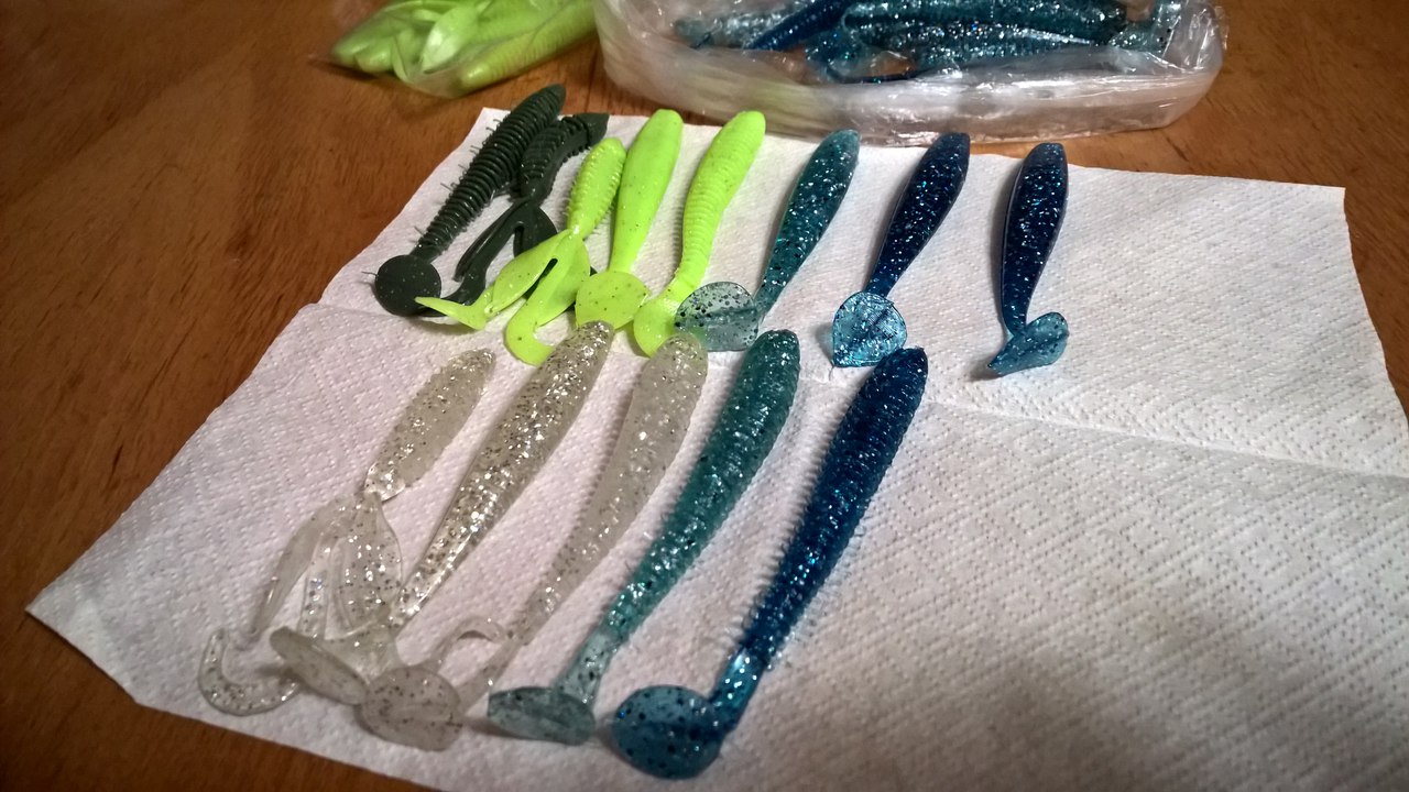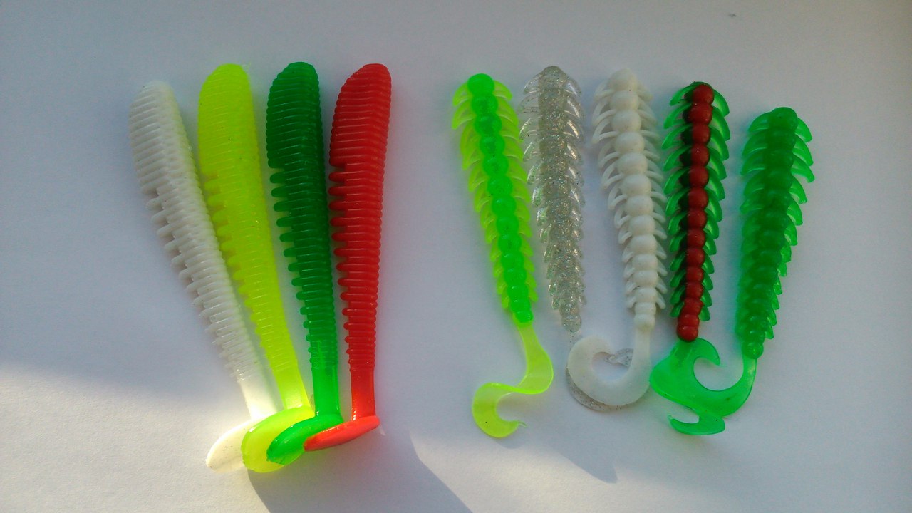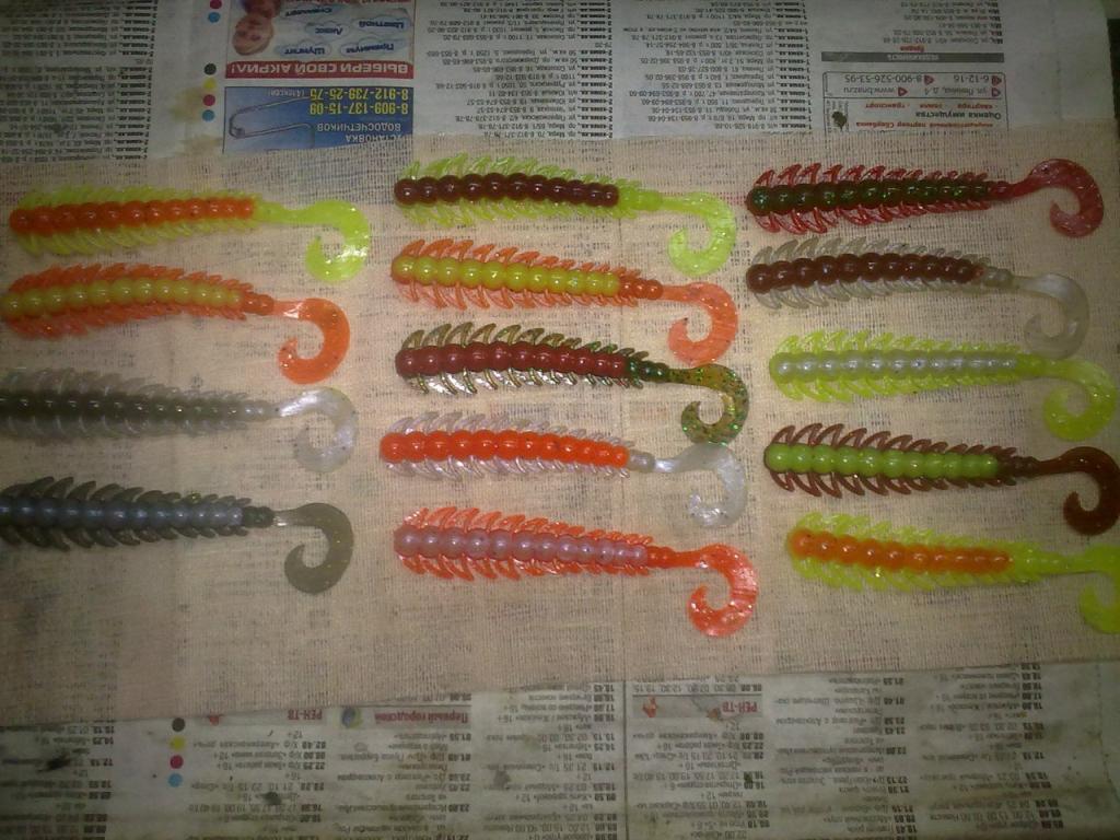 Докупил еще форм, Взял 2 кило силикона, блёстки и красители. Со старой резины лить не понравилось. бывают непроливы рёбер. По жесткости приманки разные, соответственно время разогрева разное.