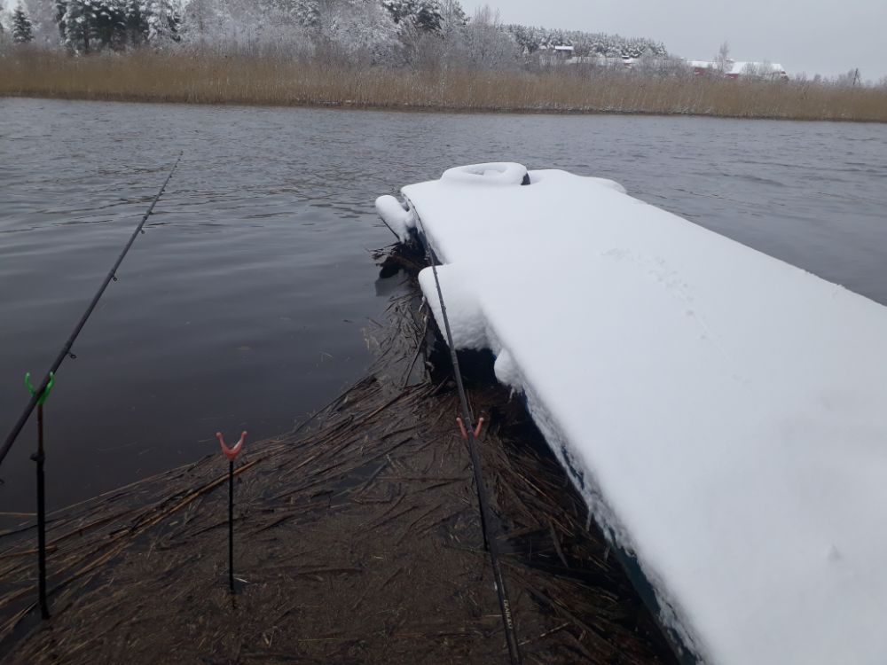 По рыбе хуже чем прошлый раз , в темноте еще окунь хапнул, с рассветом красноперка , а потом тишина , мелочь сбивала насадку и все , до обеда досидел и чую уже с жидкой водой завязал . В воскресенье вся вода еще не во льду ,но мокрым снегом полность забита . Морозики дают может и твердо будет.