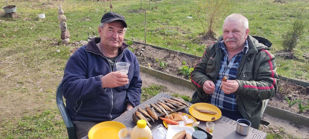 Наступил сезон уклейки! С другом снова навестили Сашу в Омеду. Рыбы много, ловят все. Уклейка в основном средняя. Проскакивают очень неплохие экземпляты. Плотва, густера, ельчик в прилове, это решил проверить, что у дна твориться. Погода прекрасная, ветер в спину, солнышко весь день. Как обычно, закоптили, пять решёток получилось. В этот раз очень вкусно получилось. Наелись до отвала.