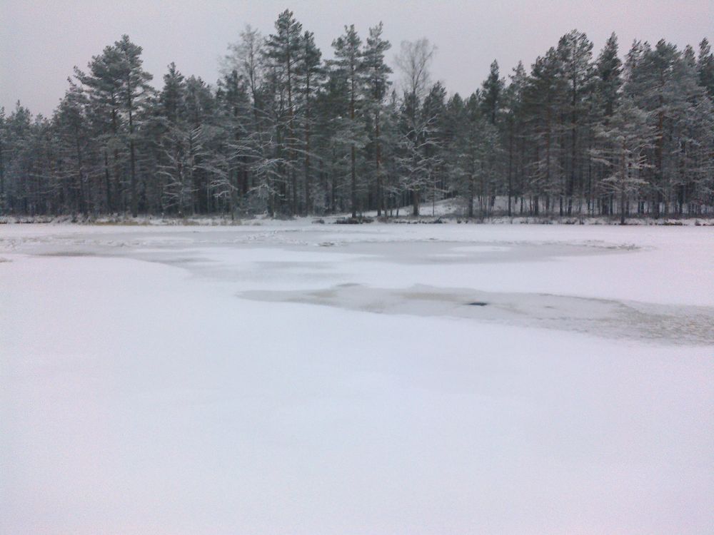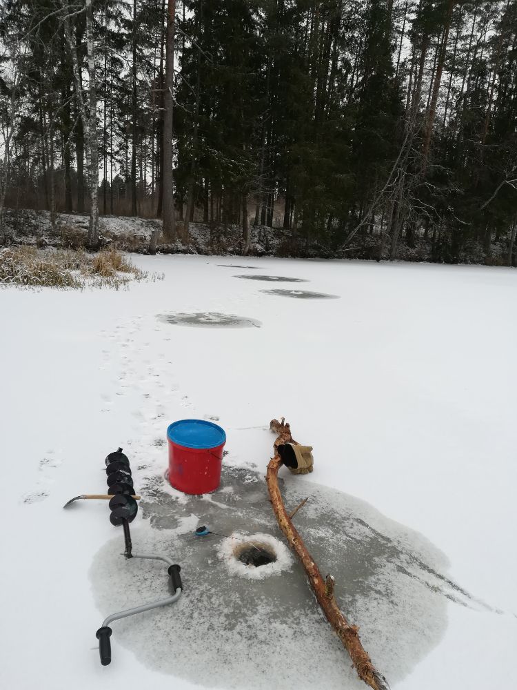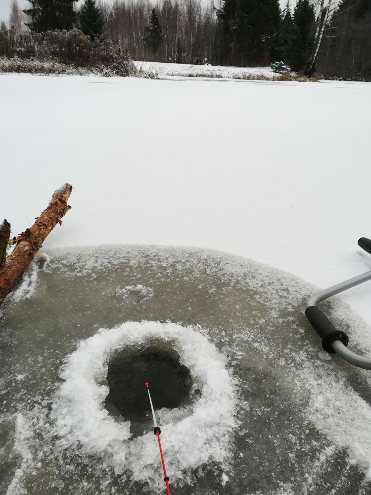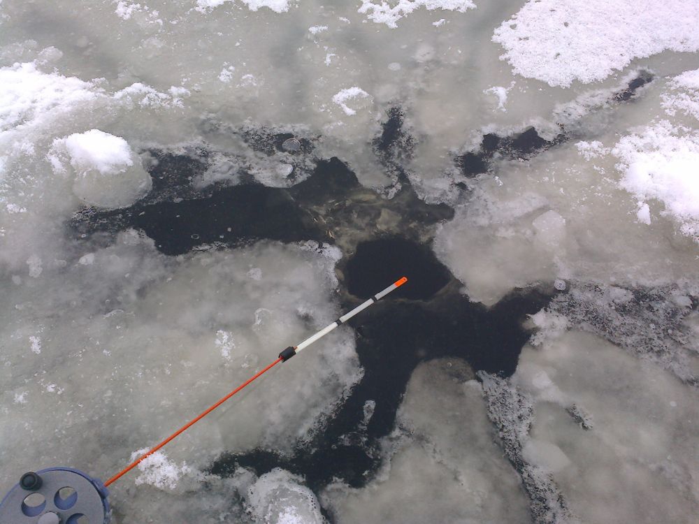 Беда в другом, зима нагрянула неожиданно, вода не успела остыть. Выпавший снег даванул малехо и она начала размывать лунки прямо на глазах.