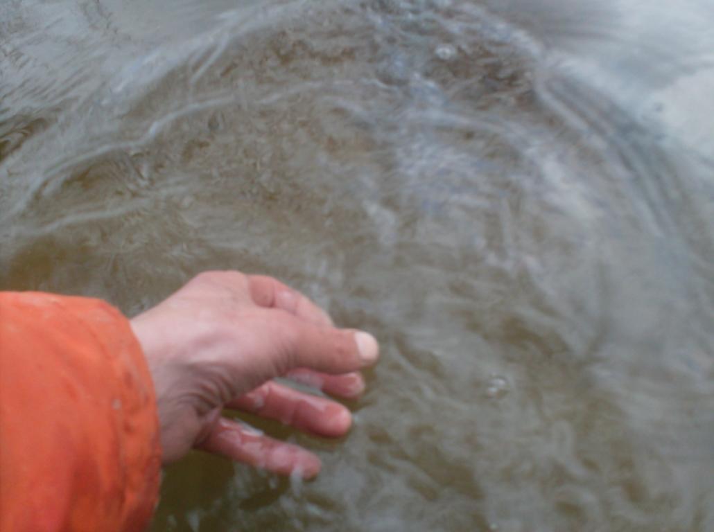 Пришлось сходить в машину.Взять забродники.Почистить дно перед собой.