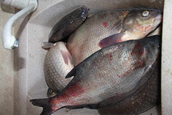 Рыбалкой остался доволен ,и лещики , и караси другого калибра (то,что надо). Ближе к обеду подошел рыбак , очевидно общий знакомый с Виктором с того года , встал рядом и вроде не мешал , ловит и ловит - рыбы всем хватит , правдо выважевал он рыбу в моей точке лова , а рыба не маленькая. Рассказал о рыбаке , который вчера ловил на матыля - почему-то подумал сразу о Викторе . Но куда мне столько рыбы ? - подумал когда собрался домой и поднял 20 литровое ведро . По дорогек пришлось везти знакомым и конечно маме.ИТОГ РЫБАЛКИ - пару лещей и штук 15 карасиков от 1 до 1.5 кг. До встречи на водоемах , с ув.Василий!