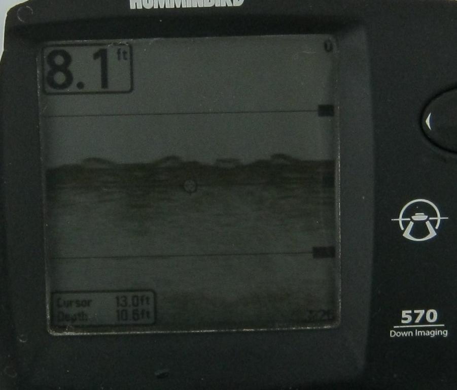 Весьма доволен использованием плоского сканирующего луча для наблюдения рыбы с берега. На первом снимке видно как рыба обступила придонный поплавок и крючки с наживкой в 15м от берега. На втором нырок (утка) пронырнул над этим же поплавком (40см от дна):