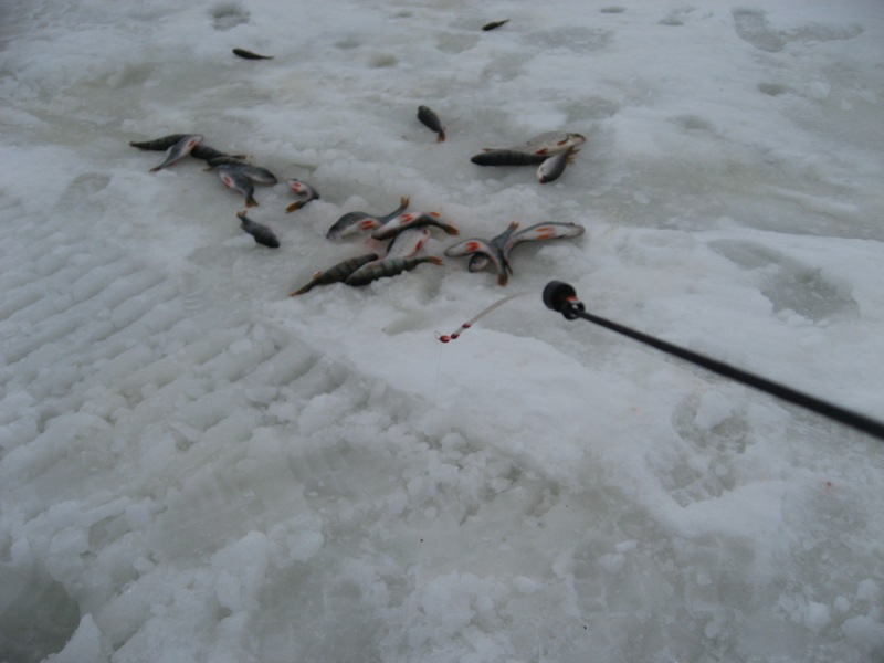 Вот и нам удалось порыбачить! В субботею и клев и уловы,рыб ловился,поклевки наглые и мона было найти при наличии желания,правда мелковат в 1,5км от берега.Второй день- смена погоды ломка рыбья,короче нехотела рыба клювать,каждый кокушок трудовой, в итоге кг по4 в среднем.Поодаль непозволил ход пока что...но все еще тока начинается-все еще впереди!Дождик-секс! А он уже есть!Кокунек до200грамм,почему то крупнее в уловах не присутсвовал,кстати в связи с етим вопрос------ПОЧЕМУ? на летних местах стоянки крупного окуня зимой голяк!? Не стесняйтесь ответы принимаются все!