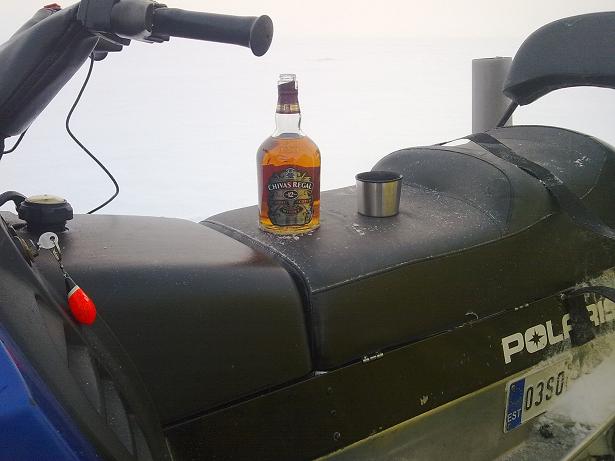 , эстонская граница - 2 минуты и вот ужо мысли все о Чуде. Забрал Гарика, зацепил ещё какую-то технику , то ли снежик, то ли .... назвал его "Дракон" - чудо российского производства и помчались мы на Базу. Полтора часика и Гарик открывает ворота - доехали. Печку затопили, ну по пиисят за приезд