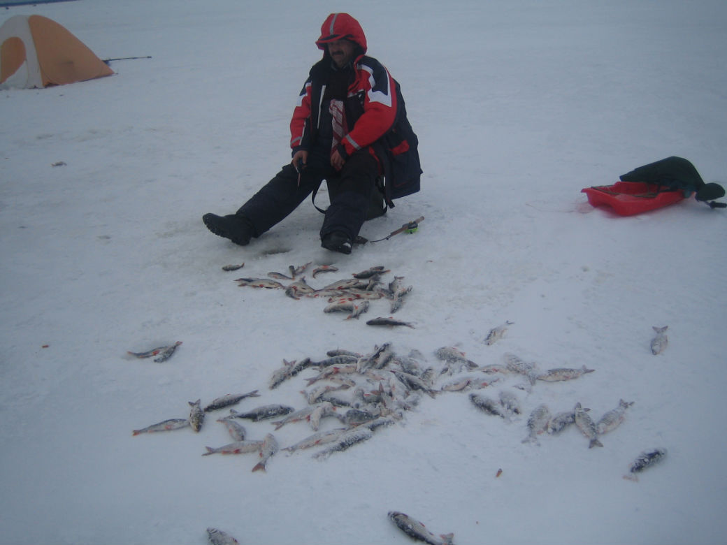 Часиков в 9 рыбка отозвалась и клевала с пременным успехом до обеда. После обеда хотел было податься в поиски клевой лунки, но как только открыл палатку желание пропало