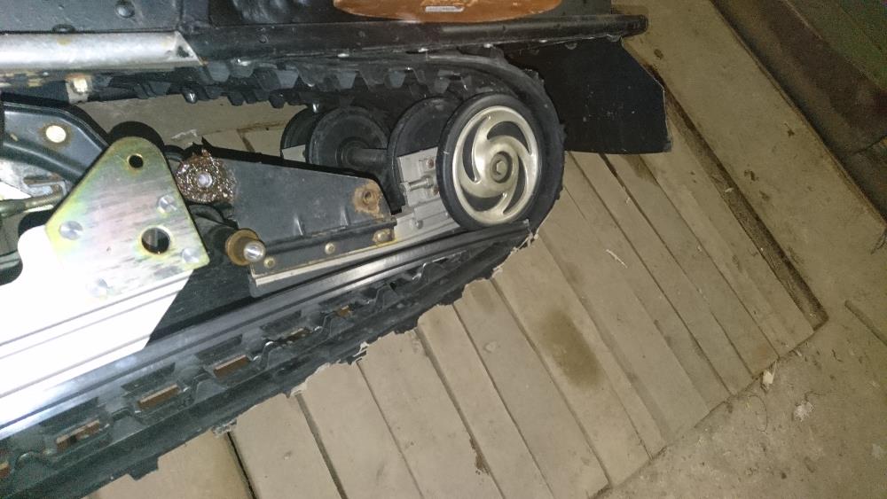 Катки конечно нужны и функция у них снижать износ склизов, у одних снежиков этих катков много у других поменьше, но речь то не об этом, не всегда зимой бывает достаточно снега что бы ездить на снегоходе, вот лёд встал а снега нет и что делать особенно если ещё и охлаждение как у нас не воздушное, а водяное при помощи снега летящего из под лыж и попадающего на алюминиевые радиаторы. Люди это всё решают специальными царапками, которые царапают лёд и эта ледяная пыль летит как на склизы так и на радиаторы. Если снежик эксплуатировать только по снегу то и проблем со склизами не будет, мы то в основном говорим про экстримальные условия эксплуатации и нагрузки. Я вот смотрел на катки когда снежик стоит на снегу, так мне например передние катки показались слижком поджатыми тоесть они ну очень сильно в местах соприкосновения с гусеницей давили на гусеницу, что та аж выпирала.