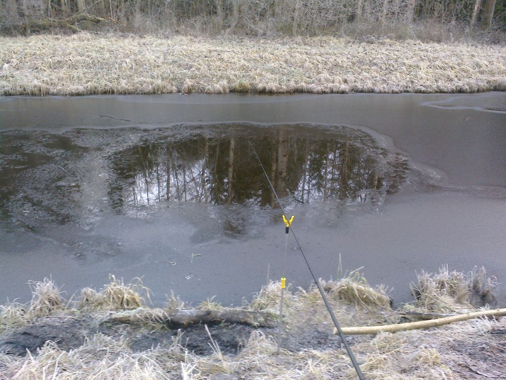 Чтобы день совсем не канул в пустую. В соседнем перелеске, спилил для этого случая, спец. бур длинной эдак метров в 7. Ну и пробурил небольшенькую луночку, аккурат чтобы только плотка проскочить смогла.
