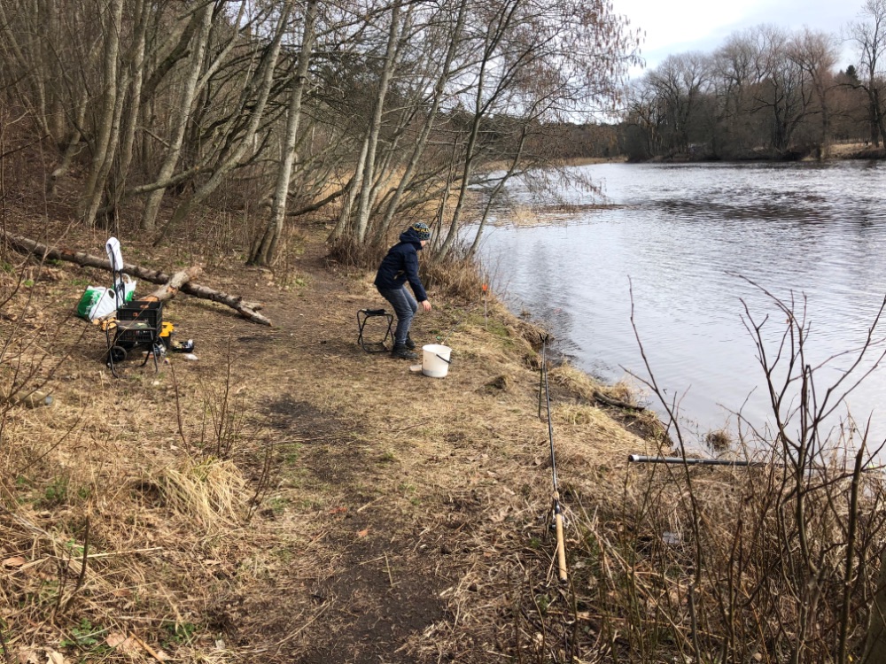 Пристроился с горем пополам. Кто не в курсе р. Пирита, летняя. Достал из морозилки несколько пакетов с прикормом. Решил всё перекидать. Морозилку подосвободить.