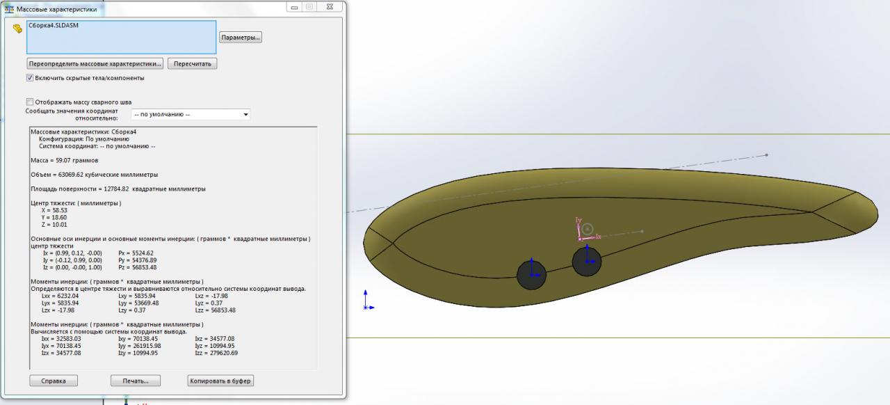 Подумал будет более технологично и способствовать большей повторяемости, делать отверстия не как на видео "Даша-Глаша" с торца после обрезки конура, а в рамках одно операции одной одной и той же фрезой, сначала делаем отверстия под отгрузку, потом обрезаем контур. Затем вклеиваем отгрузку, закупориваем ее эпоксидкой на опилках или деревянной пробкой, после чего врукопашную радиусной фрезой закругляем грани. Все ломаю голову как на этапе проектирования без лишних телодвижений прикидыать статический дифферент приманки в воде. Можно ли ориентироваться на направление осей (изображены на рисунке ниже) инерции масс?