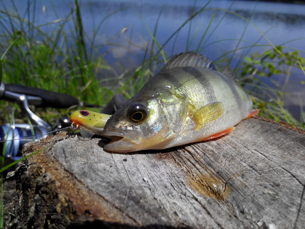 Полосатый а-ля Лаки Крафт Самми булькающий выманивал окуня из кустов, при проводке вдоль камыша. Зеленый тонущий выманивал окуня с глубины. После заброса тонет, в начале проводки выходит глайдами на поверхность, а дальше обычная волкерная змейка. Все испытатели отпущены.