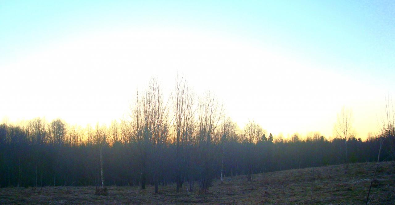 Довольно долгое время была тишина, только кто то похрустывал опять же справа, по звуку вроде олени(?), и потом опять внезапное ууооо и опять слева где и в первый раз. А света уже почти нет, сумерки довольно густые, но слава Богу без тумана. Повозившись на краю, тихим шагом открытое место перешла корова, метрах в 40-ка, а вот лосик пошел не за ней а по кустам, вот жеж... опять направо и удаляются, уже по звуку метров на 200 ушли...ну хорошо, бум пробывать по другому. Начинаю стонать, потоньше и погромче, лосик на какое то время затихает и потом с громким шумом ломится на меня...Ну, думаю, счас обойдет по ветру и охота закончена. Не, ломится напрямик, по ходу бодая кустарник, но стоит мне замолчать, как затихает и смещается по ветру. Поэтому манил постоянно, он, я, он, я, Конь вон слышал, грит шум стоял на весь лес