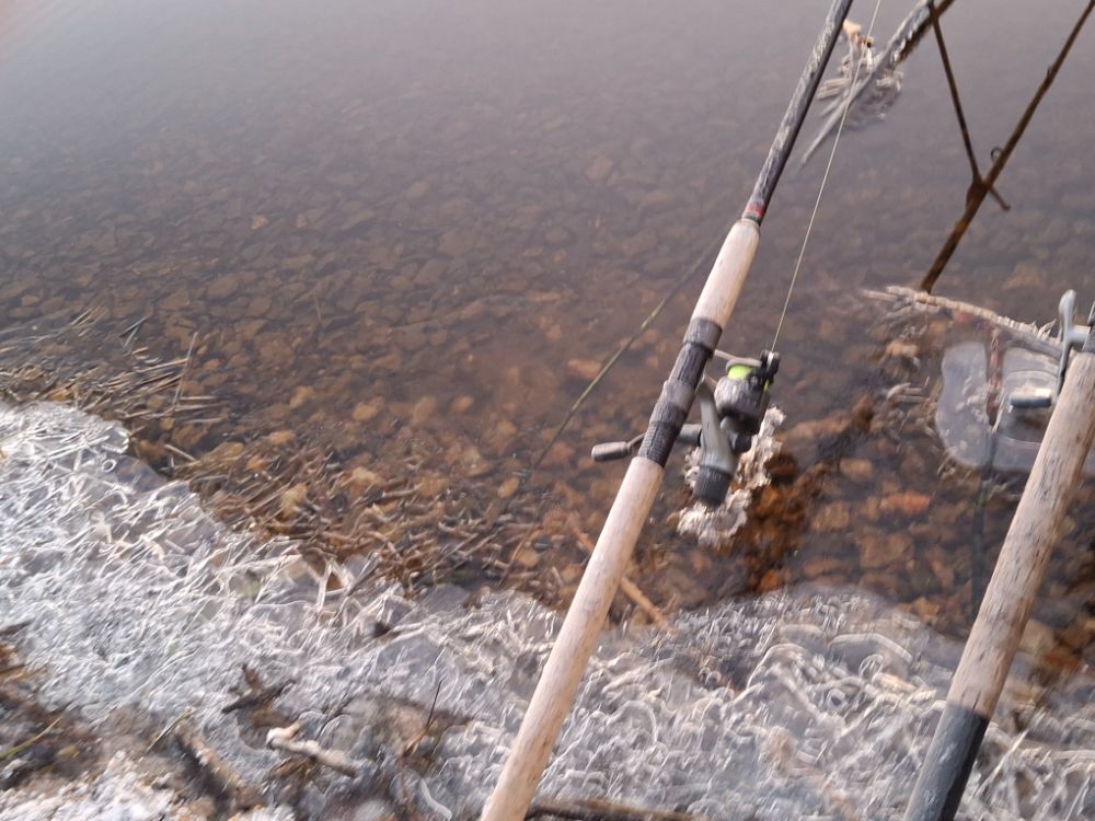 Вышел сегодня , взял термосок , ну и еще к завтраку . При подходе к речке думал может пешню взять , но понадобились только грабли соседские ,отогнать льдины от берега . Ну и два фидера ринулись в бой , а я по чайковскому , а за тем тишина , и кормил и поил (ну это себя