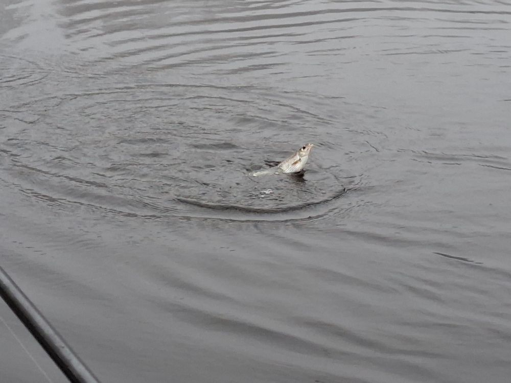 Ввбрался в пятницу под вечер , ветер с озера гонит волну по речке , течение даже то в одну сторону , то в другую . По эхолоту рыбы вроде валом , но с верху мелкая уклейка , а у дна густера , так до вечера практически толкового ничего и не поймал , а да и планировал ловить уклейку.