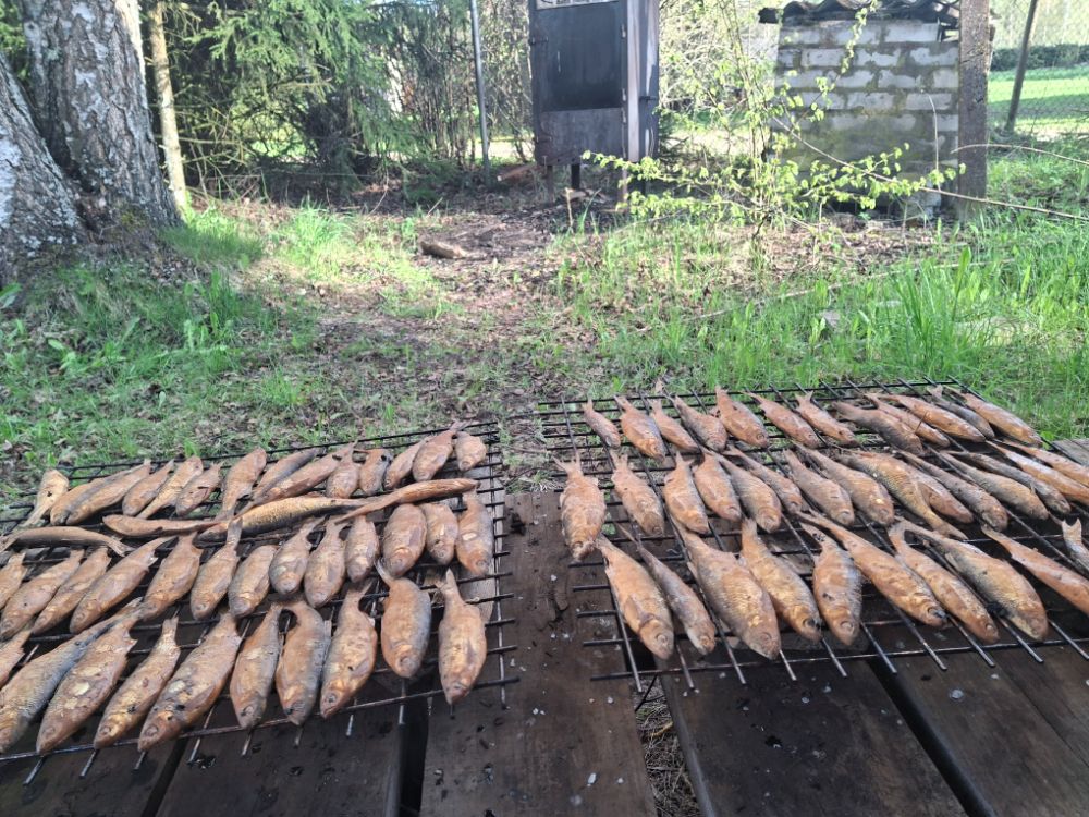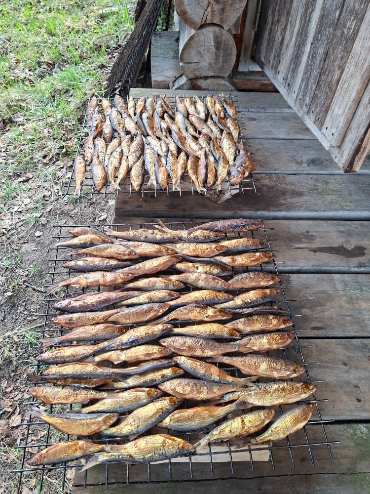 К заводу заскочили сперва к 14 часам, уклейки в заводи шалят, пару непонятных поклёвок и мы поехали на поляну к леснику. Там до 17 часов и остались, взвешивание показало за 3 часа на двоих 8 кг плотвы и штук 20 ельца.