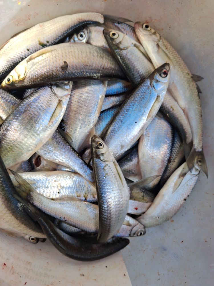 Уклейку нашли. Чутка половили, и решили отложить это дело на завтра. А завтра с утра решили посвятить ещё пару часиков плотве, а уж потом за уклейкой. Тем более место локации уже есть. Плотва конечно там же, но если в пятницу все самки были полные, то в субботу очень много уже пустой. Сложилось за пару часиков штук 30 икрянок. И рванули на уклею.