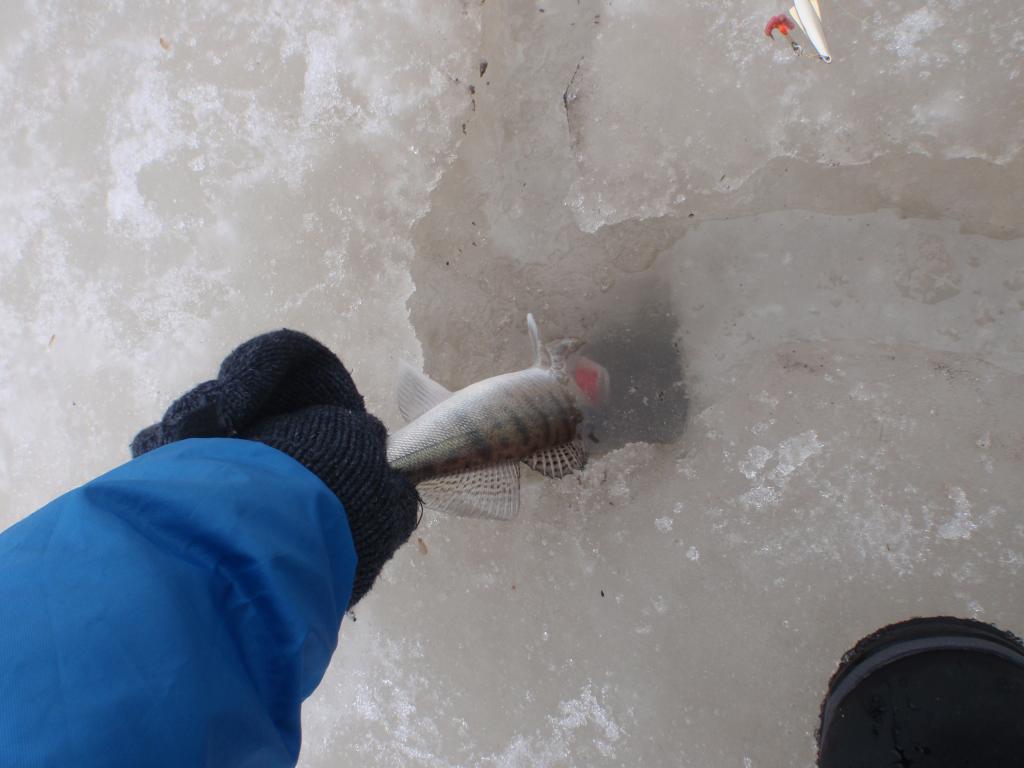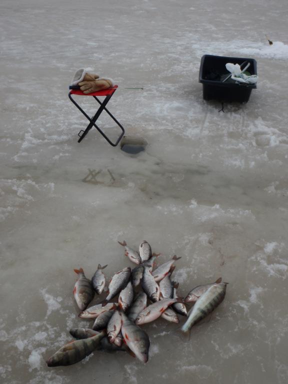 Лёд сантимов 50,но весь рыхлый,игольчатый. Ещё завтра можно спокойно,а там уже лучше ни ни. Рыбка ловилась исправно-мелкий судак,красивая плотва и окунь,споймался один язёк,в первые в этом месте.