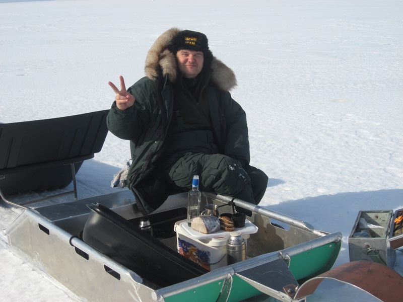 . Час пути и мы на месте - судак здесь, говорит Фил, бурит лунку и заваливается на боковую.